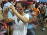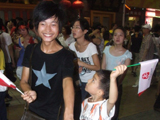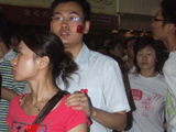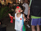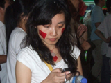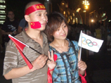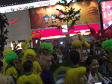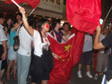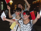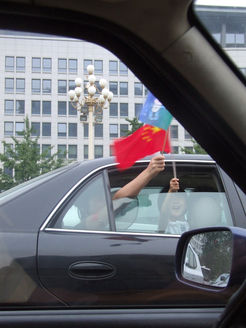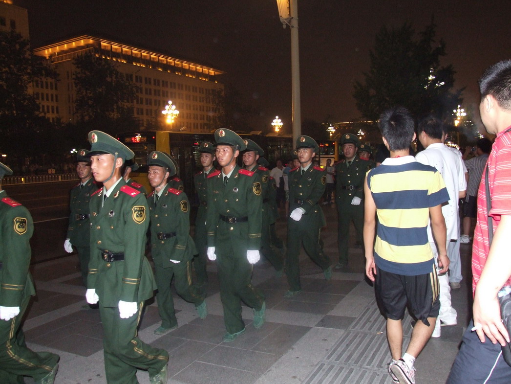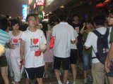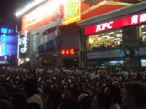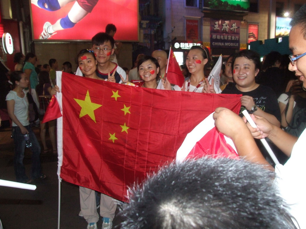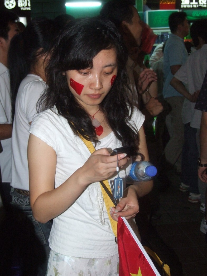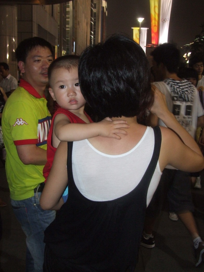 План Б. Вся улица - переполнена. Европейцев много, как никогда за эти дни, но все равно они в явном меньшинстве. Китайцы размахивают красными флагами - большими и маленькими, все жмутся к огромному экрану на котором начинается шоу. Выбраться из толпы нельзя, человеку с клаустрофобией стало бы плохо. Но вокруг чувствуется всеобщий восторг. Происходящее на экране толпа встречает криками. Мы не понимаем, что значат иероглифы, которые составляют из себя артисты, а толпа понимает и ревет что есть мочи. Внезапно появляется группа из десятка бразильцев они устраивают дикий танец и толпа расступается. В другом месте группа китайцев с флагами что-то скандируют и толпа отзывается на их призывы. В общем мы вдоволь наобщались с китайским народом. Очень плотно. Так как церемони продолжается довольно долго мы переходим к плану C.