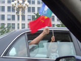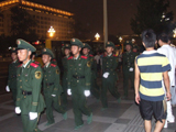 План А. За час до открытия мы приехали к границе Зеленой Зоны. Билетов на открытие у нас не было, так что не было и особых надежд, но нам очень хотелось посмотреть на прилегающие территории. В метро все страшно торопятся и бегут наверх. В переходе появляются измученного вида оптимисты, которые каждому суют под нос бумажку - need ticket. Они поголовно американцы, это написано у них на лицах (в буквальном смысле - тоже, аквагримом нанесен американский флаг или буквы USA). Билеты им никто не продает, но они очень сосредоточены и серьезны. Желаем им удачи. Мы хотели подойти как можно ближе к большим экранам, которые расположены на медиа-центре, но это не удается. Военные перекрыли слишком большой кусок города и обойти их не получилось. В воздухе барражируют вертолеты, по пустым огромным площадям проносятся машины с мигалками, в общем тут делать особенно нечего, разве что ждать салют. Так что вступает в силу план Б.