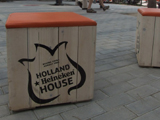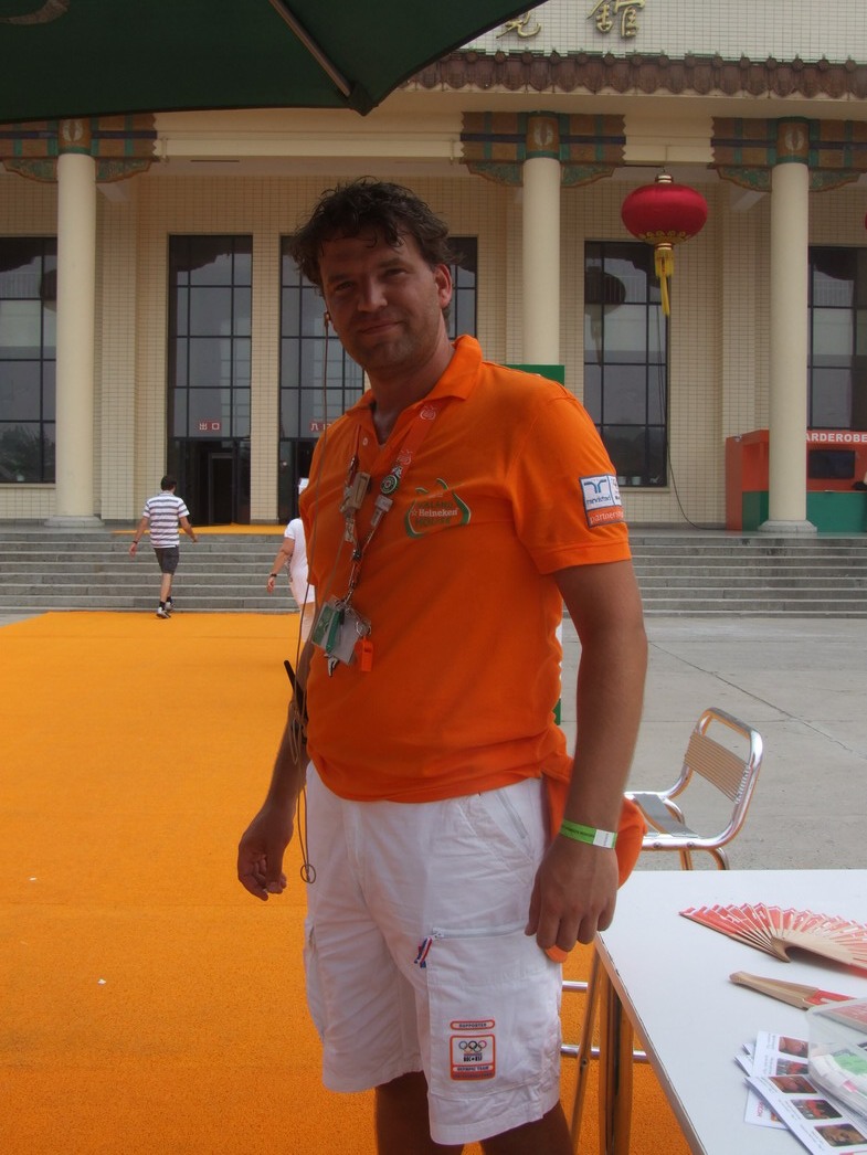 На входе спрашиваем девушку: «А что у вас больше в Доме, Голландии или Хайнекена?». Вход свободный, по паспорту... для иностранцев. Китайцам, судя по всему, вход заказан. Голландский дом - это огромное пространство, включающее в себя массивный особняк, стилизованный под древнекитайский, площадь перед ним, небольшой парк, большое выставочное здание и еще несколько открытых площадок. Все пространство до и внутри дома безупречно забрендировано и стало оранжевым. Основные национальные элементы - мельницы, тюльпаны, спешные башмаки тоже присутствуют.