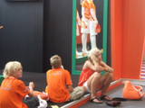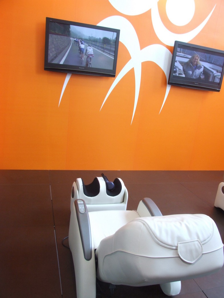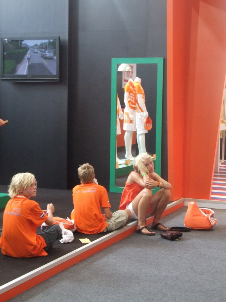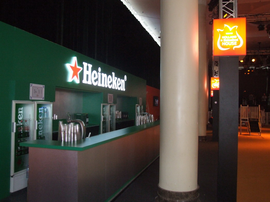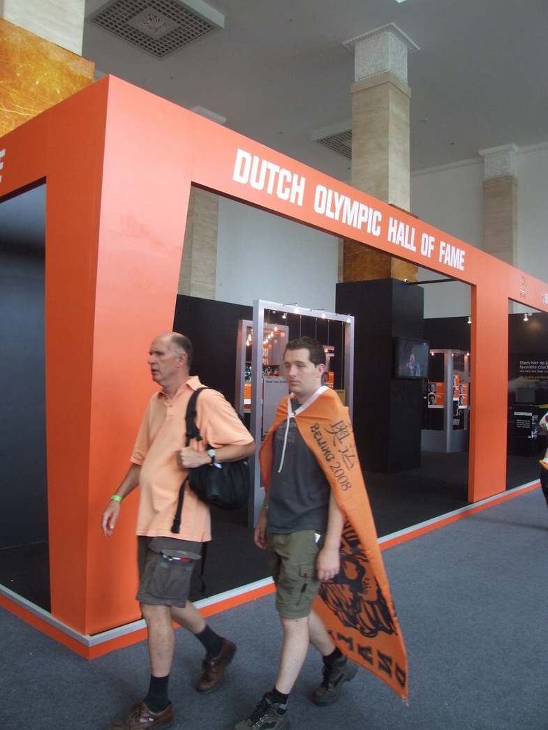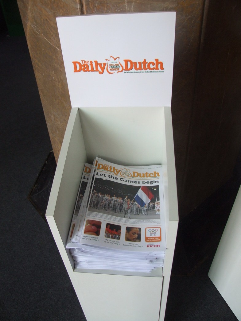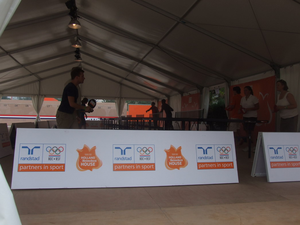 На входе - камера хранения, тут можно оставить свой рюкзак... или не оставлять. Это не обязательно, просто для вашего удобства. В большом холле находятся информационные стойки с доступом к интернету. Далее - бутик одежды, в том числе одежды национальной сборной. В следующей части - Vitality Campus. Внутри - пара забавных автоматов, которые взвешивают, измеряют давление, а потом выдают свое заключение относительно вашего физического состояния. Несколько интерактивных зон - велосипед, игра «кто чаще топнет» и виртуальный бокс. Все реализовано безупречно и очень увлекательно. Ненавязчиво, но в спортивной тематике. На улице - несколько столов для тенниса (все заняты), а также линия с закусками и напитками. В отдельном помещении - клуб, музыка и несколько барных стоек с Хайнекеном. На руку, кстати, навешивают полоску плотной бумаги зеленого цвета с предупреждением, что потреблять Heineken нужно «ответственно». Гости дома любезно приглашают на вечеринку: «Это будет что-то, обязательно приходите, здесь собирается до 1000 голландцев, оранжевая вечеринка, много Хайнекена». Вообще голландцы очень приветливы - улыбаются и подмигивают и их не заботит, что мы - не граждане Голландии пришли в их дом. Они занимаются своими делами, живут своей жизнью и не мешают остальным. Все отлично говорят на английском. Обязательный элемент в виде плазменных панелей с прямыми трансляциями и уникальное предложение - собственная газета Dutch Daily. 9 августа в ней был репортаж об участии голландской сборной в церемонии открытия с фотографиями, на 2-х языках. Есть особая стена для новостей Игр, где выделено место для каждого дня. Правда пока она была пустой - сами соревнования только начинаются. На выходе неистраченные деньги возвращают. Для журналистов работает небольшой пресс-центр. Кстати, в доме, кроме того, есть ресторан, места в котором нужно бронировать заранее (в середине дня не было ни одного свободного столика). В общем, можно сказать, что Голландия с блеском подтвердила свою репутацию самой либеральной страны мира. Репект.