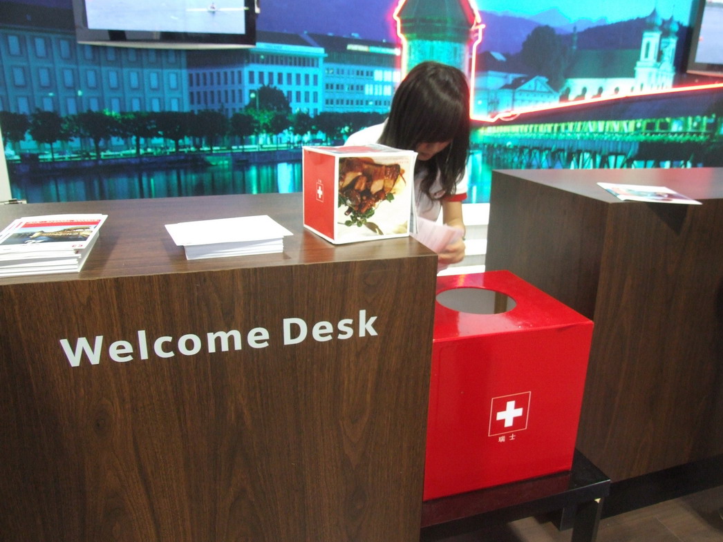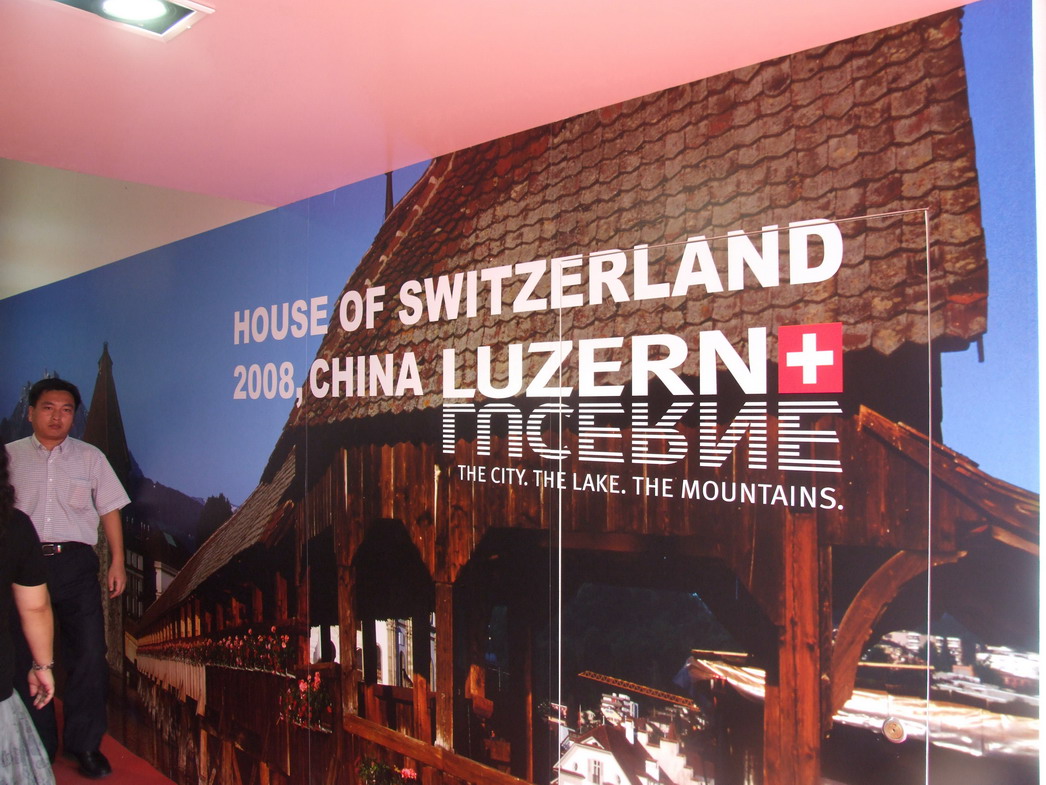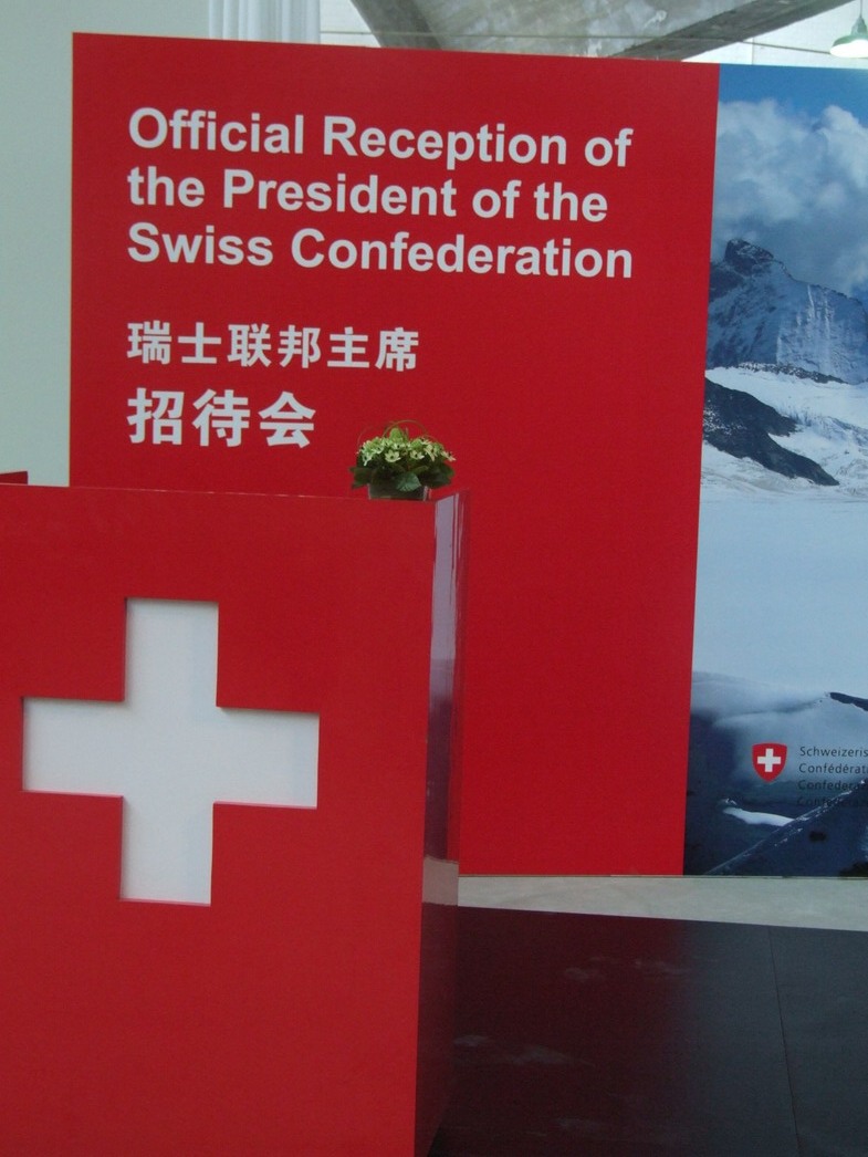 Швейцария Швейцарцы предложили китайцам посмотреть на их лыжные склоны, банки, часы, ножи и попробовать их мороженое и шоколад. Скучные стенды расположены по периметру помещения. Неизбалованные таким вещами китайцы дружно обходят зоны, собирая буклеты и листовки. Длинная очередь за мороженным. Посередине поют национальные трубачи и играет национальный оркестр. Китайцы фотографируют их, а потом себя на их фоне. В отдельном блоке - спортивная трансляция на немецком, красные и белые столы и стулья, но эта зона еще не готова. Если кратко: «открыто, без пафоса, скучно».