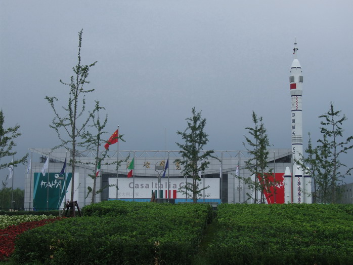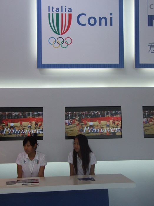 Casa Italia находится у самой границы города в выставочном павильоне. Это организованная итальянским агентством развития выставка со свободным входом (но строгий досмотр тут тоже есть, как и во всех остальных публичных местах, включая метро). На входе скучающий итальянец записывает данные наших паспортов. Китайские сотрудники выставки говорят на итальянском, но по-английски - с большим трудом. Это очень забавно выглядит, когда китайцы стараются с тобой говорить по-итальянски и удивляются, когда ты их не понимаешь. Информационные материалы тоже на итальянском и китайском.