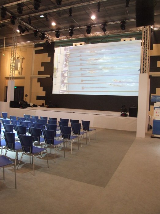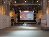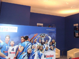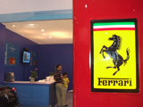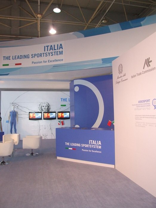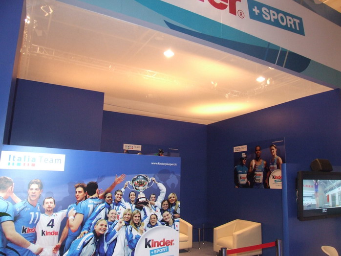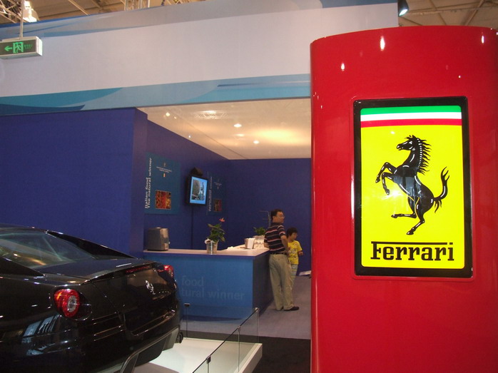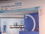 На выставке представлены итальянские производители спортивных товаров, тренажеров и т.п. Гордо стоит стенд с Ferrari. В глубине выставки - итальянский ресторан на 100 мест, но попасть туда нельзя. Из-за языковых проблем мы так и не выяснили, почему.