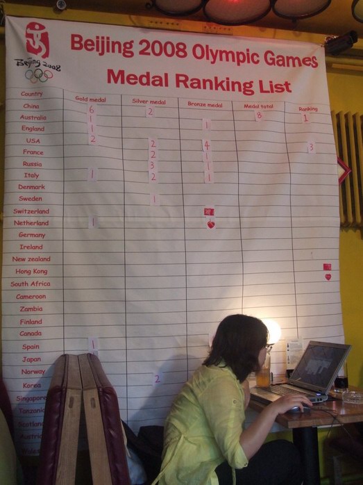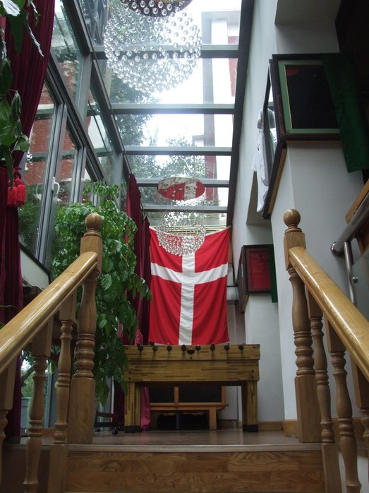 Клуб датских болельщиков решил не усложнять ситуацию и просто обосновался в одной из пивных Пекина. На стенах скотчем прикреплено расписание соревнований, есть фирменная майка с викингами, несколько больших экранов и много пива. Вход свободный (это же бар), сидят оранжевые голландцы, итальянцы, немцы, чинно разговаривают за кружкой Гиннеса. Датская олимпийская команда не такая большая, как китайская или американская, так что нет и накала страстей. Нам посоветовали прийти на следующий день, когда датчане будут играть в гандбол.