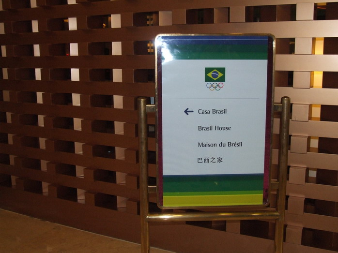 Бразилия претендует на то, чтобы провести Олимпиаду у себя в Рио в 2016 году, так что их Дом обладает определенной целью - представить в лучшем свете Рио-де-Жанейро. Мы попали в Casa Brazil рано утром, накануне пресс-конференции бразильских медалистов. Для посетителей вход закрыт, но, показав журналистское удостоверение, мы попадаем внутрь. Помещение располагается в гостинице, оформлено очень приятно - бразильцы воссоздали кусочек Рио с магазинчиками сувениров. На плазменных экранах крутятся ролики о том, как здорово было бы провести тут Олимпиаду. Для журналистов готовится кофе, легкие сладкие закуски. В общем, приятно и довольно расслаблено.