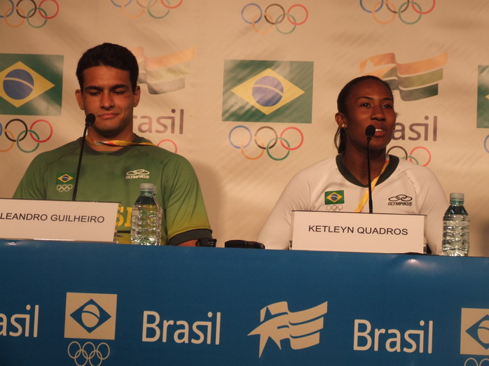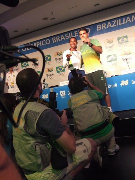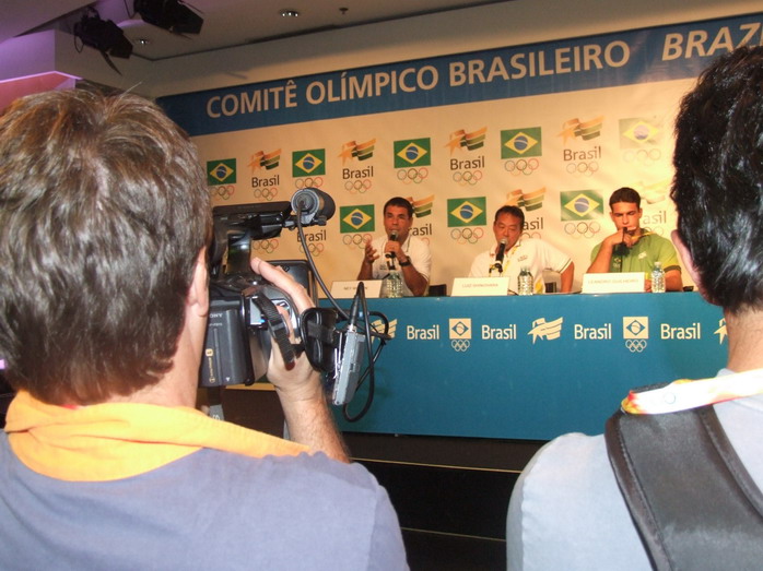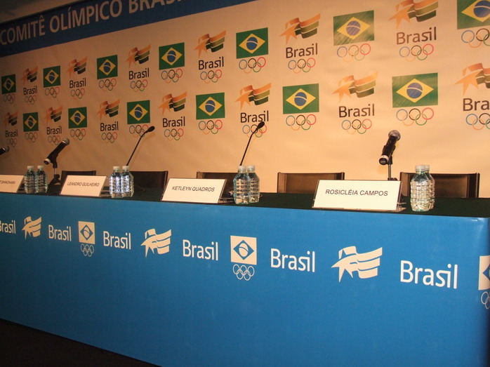 Сама пресс-конференция прошла очень организованно, ведущий давал возможность задавать вопросы и прерывал тех, кто затягивал разговор. Атлеты выступали очень эмоционально. Двое спортсменов, завоевавшие медали, светились от счастья, одна девушка (очевидно, не получившая медаль) едва сдерживала слезы... Журналистов снабдили каталогом с данными по всем атлетам. Жаль, что все по-португальски.