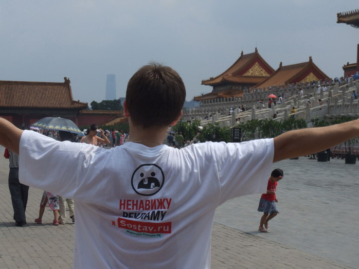 Мы шли по пешеходной туристической улочке вдоль набережной. Звуки тихой китайской музыки перекрывали динамики Русского Дома - пели русские артисты. Что в связи с этим думают посетили ресторанчиков на набережной трудно сказать, но не заметить наш Дом еще труднее. Очень уж он яркий и громкий.