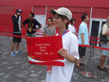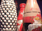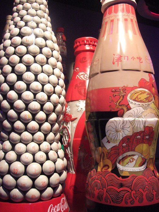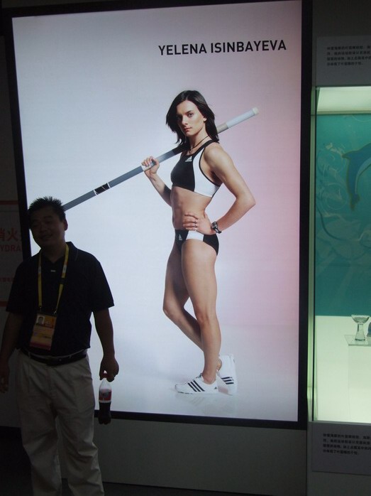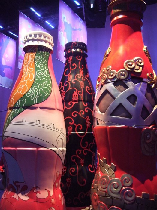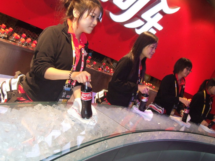 Coca-Cola Или про новый автомат по продаже напитков - у него тачскрин, ты можешь выбрать из десятка видов оформления бутылки, можешь скачать себе на телефон мелодию или стильный фон. Или про майки и кепки, которые делают из переработанных пластиковых бутылок. На обратной сторон таткой майки силуэты 5 бутылок - столько бутылок нужно, чтобы произвести такую майку. Это целая программа Coca Cola со слоганом "I Live on Earth". Кстати, людей с таким слогам на майках мы не раз встречали в Пекине. Мы спросили PR-менеджера компании, насколько в Китае сейчас актуальны все эти проблемы окружающей среды и ответственности по отношению к природе. Намекая на смогу и общее развитие общества. Он, конечно же, ушел от ответа. Еще вам расскажут про особую стеклянную медаль (переработанное стекло из бутылок Кока-колы), которую вручают за особые достижения спортсменам и не только. Каждый вечер в этой части павильона проходят встречи журналистов с известными факелоносцами со всех концов мира. Например, через пару дней после нашего приходя должна была состояться встреча с Николаем Дроздовым. Coca Cola инициировала создание короткометражного фильма о Дроздове, о его вкладе в защиту окружающей среды. Для большинства посетителей стенд Coca Cola - это веселое путешествие по павильону. Основная тема - выставка бутылок с уникальным дизайном. У каждой бутылки есть свой дизайнер, который хотел передать какой-то символ, характер. Выглядит это отлично. Плюс - зажигательный джингл (на китайском), который хочется напевать. Эта песенка привязывается, в отличие, скажем, от официального гимна Олимпиады. В общем - отлично, подняли настроение. Кстати, есть выставка факелов...