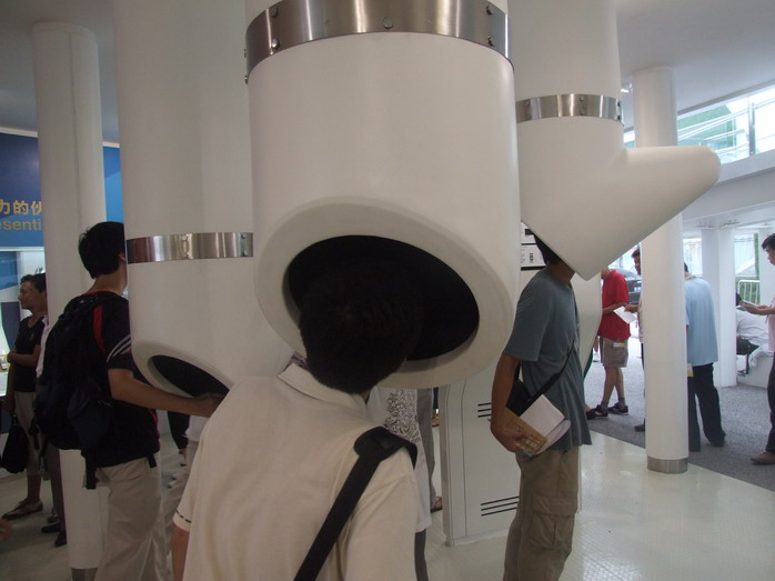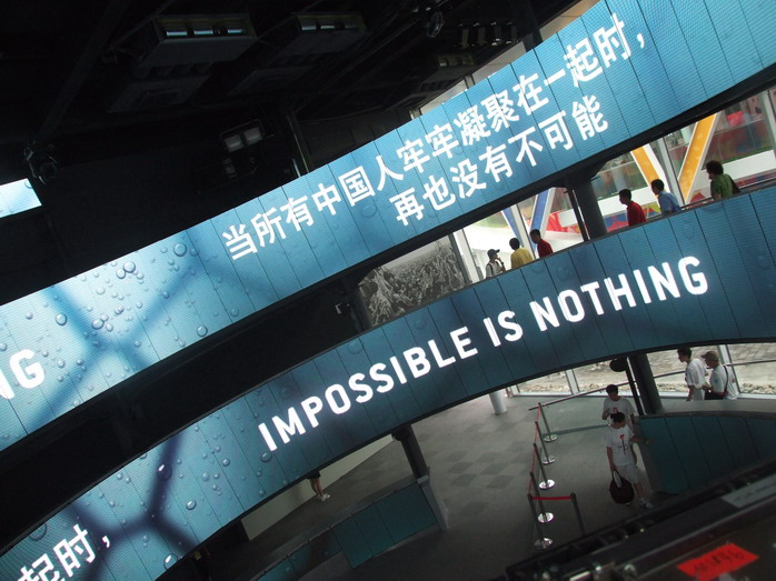Спонсорские павильоныВ Зеленой зоне расположены шикарные павильоны спонсоров Олимпиады. Международные корпорации и крупнейшие китайские компании заплатили по несколько десятков миллионов долларов (или юаней) спонсорских взносов, так что на свои павильоны они не поскупились. В целом хочется отметить - павильоны были довольно похожи между собой и чаще всего напоминали большие выставочные стенды на какой-то крупной имиджевой выставке. Мы заметили, что Китае есть странная мода на интерактивные игры - 3D-симуляторы чего угодно: полеты на самолетах, катера, автомобили. Также популярны тачскрины и игры с интерактивными экранами вроде «собери все пузыри в кучку». В общем, некоторым спонсорам хочется пожелать больше креатива и больше англоязычного персонала. Теперь проведем краткий обзор по каждому стенду.