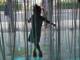 Так вот, в павильоне есть дорожка-серпантин, на внутренней поверхности которой установлены экраны - сплошная поверхность. Спустившись вниз, оказываешься внутри цилиндра, поверхность которой представляет собой экран. И на эти экраны транслируются олимпийские ролики Адидас. Они героические и красивые и стоять внутри этого огромного спиралевидного «кинотеатра» - потрясающее ощущение!