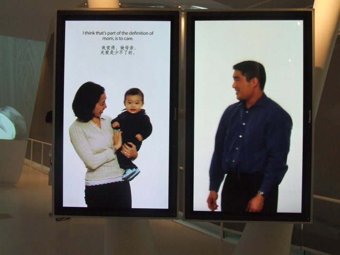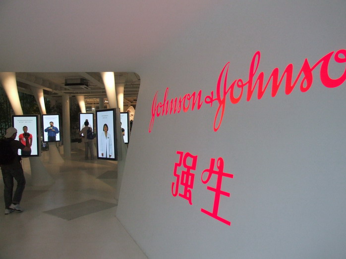 Johnson & Johnson Чуть дальше транслируется ролик компании, а перед ним в воздухе возникают изящные 3D модели отдельных элементов из ролика. Смотрится потрясающе: ненавязчиво и проникновенно. Компания официально помогает восстанавливать знаменитых терракотовых воинов. О чем и говорит в своем мини кинотеатре. Компания не рассказывает много о своих продуктах. Скорее - о своих ценностях, о том, как она умеет заботиться. Стенд называется «The Caring World». И это подкупает.