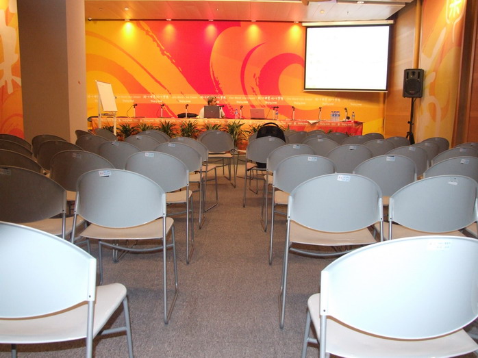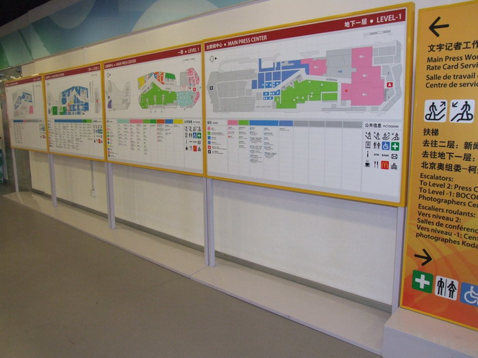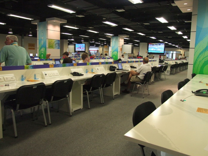 Пресс-центр Олимпийских игрК пресс-центру относиться равнодушно мы не можем. Два раза за нашу карьеру мы готовили международные пресс-центры. Один раз на 500, а второй - на 1000 человек. В последнем случае пресс-центра был «всего лишь» в 6 раз меньше по вместимости, чем Олимпийский. Несмотря на грандиозные цифры в 25 тысяч журналистов, официально Олимпийский комитет в главный пресс-центр (MPC) аккредитовал всего лишь около 5600 журналистов. По словам организаторов, главный пресс-центр является самым большим пресс-центром за историю олимпийских игр. Еще около 10 тысяч получили аккредитацию в Пекинский международный медиа-центр - BIMC (кстати, мы зарегистрировались в BIMS, но нам не дали аккредитации, так как у нас не было визы категории J - специальной визы для журналистов). Еще один объект в этой цепочке - международный центр трансляций (IBC), царство телевизионщиков, также вмещающий несколько тысяч человек. Рядом с главным пресс-центром находятся 2 отеля, предназначенных для журналистов, 3*** и 5*****. Отели соединены с пресс-центром коридорами, так что можно даже не выходить на улицу. Правда, только если вы являетесь ключевым сотрудником какого-нибудь ведущего мирового издания. Несколько любопытных фактов о главном пресс-центре: - Рабочая зона на почти 1000 мест, частично с Интернет-подключением. Интернет, как и телефон, за плату, нужно покупать специальную карту. Множество изданий, рассказывающих о Пекине, Китае, олимпийских объектах, национальных сборных, книги, CD, плакаты. - Есть также около 200 мест, оборудованных специально для фотокорреспондентов (есть специальный томик-гид именно для фотографов), часть из них - с компьютерами Macintosh с огромными экранами. Есть стенд Nikon c возможностью аренды фото-оборудования. Кстати, у аккредитованных фотографов особая форма - специальный жилетки. - 5 залов для пресс-конференций называются «Слива», «Орхидея», «Бамбук», «Хризантема» и «Сосна» - Большие коридоры Пресс-центра получили уникальные имена и называются «улицами». Тут расположены всевозможные офисы различных газет, журналов, информационных агентства. Кстати, тут есть большой центр GettyImages, которые являются официальными фотографами Олимпиады. Они делают потрясающие фотографии и продают их журналам и газетам. А посетителям - просто раздают отпечатанные фотографии. - В большой ресторанной зоне в меню учтены национальные особенности журналистов из Азии, Европы и Америки. А также работает универсальный McDonald's. - В Пресс-центре работает фитнесс-центр (ни одного журналиста внутри!), массажный кабинет (свободных мест нет!), библиотека, химчистка, туристическое агентство, парикмахерская. Все это бесплатно для аккредитованных журналистов. Так же много кофеен и небольших выставочных композиций - мастер каллиграф рисует иероглифы и т.п. - В Пекине вообще и в пресс-центре в частности не открываются некоторые сайты, например, сайты BBC или блог-сервис Livejournal .com - Экраны установлены во многих местах, например, в рабочей зоне. На некоторых транслируются фотографии GettyImages, на некоторых - соревнования. Но самый прикольный и большой экран установлен в холле, возле входа. Наблюдать на нем баскетбол было невероятно приятно. Не хватало только мягкого кресла или пуфиков как в пресс-центре Евровидения За пропуск в Пресс-центре мы хотим поблагодарить Геннадия Швеца, Руководителя пресс-сл