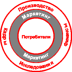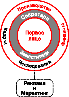 В центре такой компании находится потребитель, Клиент. Промежуточным звеном, между Клиентом и всеми подразделениями компании выступают маркетологи (отдел маркетинга). Маркетологов иногда называют представителями клиента на фирме. И чем более профессионально и агрессивно маркетологи представляют интересы клиента, тем лучше для фирмы. Сейчас на большинстве западных компаний операции приблизились к пределу оптимизации, и набрать очки за счет операций, включая бездефектное производство и пунктуальность поставок, становится все труднее. Многие компании распродают свои производственные и прочие «операционные» мощности, превращаясь в чисто маркетинговые фирмы. А как у нас?По окончании славного ящичного периода у нас неожиданно наступила жесткая конкуренция, и сразу же повсеместно резко сократились или даже остановились продажи. Что делать? Многие начинают в панике снижать цены, тратить больше денег на рекламу (которая на поверку оказывается псевдорекламой), а воз и ныне там! Редко кто понимает истинные причины ситуации. Об этом, в частности, говорят результаты ежегодных опросов руководителей российских фирм, которые проводит одна иностранная консалтинговая компания. В ответах наших генералов на вопрос о причинах их проблем иностранцев поражают наша советская привычка перекладывать ответственность за свои неудачи на других: государство не подготовило законы, не организовало финансовую систему, неправильно взимает налоги. Большинство из тех, кто сетует на низкие продажи, просто неспособны вести правильный маркетинг и производить те товары и услуги, которые пользовались бы спросом. И очень редко кто говорит о необходимости повышения эффективности маркетинга и сбыта. А чего удивляться? Маркетинговая культура подавляющего большинства российских фирм находится на исключительно низком уровне. У некоторых она на нуле. Так, председатель одного крупного московского банка даже с удивлением спросил – а что такое маркетинг? Любые вопросы о клиенте, его потребностях и его реакции на продукты и услуги компании у многих вызывают недоумение и даже шок – а какое это вообще имеет отношение к нашему горячо любимому бизнесу? Не всегда помогает даже интенсивный двух-трех-дневный маркетинговый ликбез, который я обычно провожу с каждым новым генералом. Хуже всех поддаются те, кто заработал немалые деньги в «ящичный» период. Таких, по моему опыту, вразумляет только разорение. А жаль. Наши маркетинговые беды начинаются с того, что наши директора сами имеют о маркетинге весьма туманное представление. Для них, воспитанных на производственном мышлении, работа – это, в основном, перемещение ящика из пункта А в пункт В. Приобрести технологическое оборудование или построить склад – это важно; а маркетинг и маркетинговое мышление – это пустые новомодные штучки. Да и характерная для большинства российских компаний вертикальная командная структура – это не лучшая среда для творческой маркетинговой мысли. Если попытаться представить эту структуру, то, что мы, господа, поставим в ее центр? Правильно, именно Вас, уважаемые генералы – клиентом здесь даже и не пахнет. А кто вокруг? Ваши секретарши и замы, а также ваше любимое производство, логистика, финансы и прочие «серьезные» вещи. А где маркетинг? Если он и имеется, то чаще всего это бессмысле