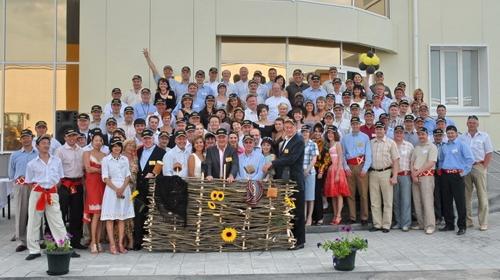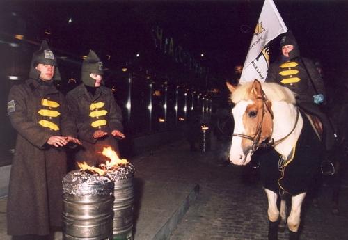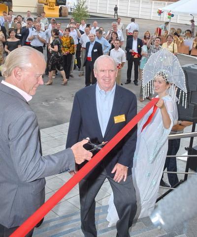 Так, у всякого корпоративного новоселья есть обязательный элемент — пафосное перерезание ленточки перед новым зданием. На «Новоселье по-русски» эту ленточку держали две русские красавицы в кокошниках, что сильно украшало рутинную, в общем-то, процедуру.