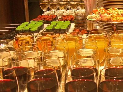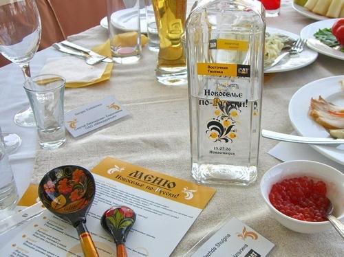 Деньги надо тратить не на дорогие блюда, а на те которые можно обыграть в стилистике праздника. Тогда гости запомнят, чем их угощали. Вот, например, на «Новоселье по-русски» меню было очень богатым, но осетровые и их икра прошли незамеченными. А запомнились гостям те позиции меню, которые были поданы как элемент праздника, оформлены и акцентированы. Как уже упоминавшаяся специально брендированная водка. А также блины и тут же выпекавшие их «аленушки» в русских сарафанах и косынках.