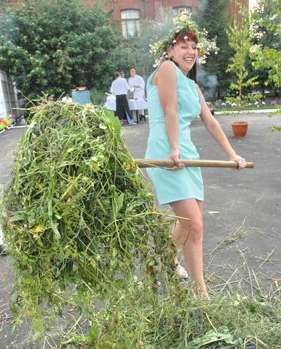 Но общая фотография — это только один повод для воспоминаний. А таких поводов и мест, привлекательных для фотографирования, на празднике можно создать много. Например, на «Новоселье по-русски» гости с удовольствие фотографировались у плетня, за прялкой и особенно на стожке сена в компании с Селянкой и Первым парнем на деревне.