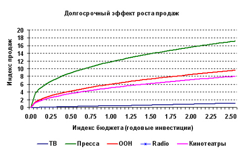 Компании стремятся управлять рекламой как грамотным инвестированием, закладывая оптимальные на их взгляд рекламные бюджеты, что на практике не всегда приводит к ожидаемому финансовому результату. Причин тому масса, внешних и внутренних. Часто, делая акцент на каком-то одном медиа, например на ТВ, рекламодатель не учитывает так называемого синергетического эффекта от мультимедийного размещения, не анализирует разницу в соотношениях между рекламными затратами на медиа и стимулируемыми рекламным воздействием продажами.