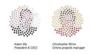 Показателен прием, когда знак отражает не только абстракцию, но и вполне конкретные изображения. В частности, на визитках в знаке проявляются стилизованные изображения лица их владельцев. |