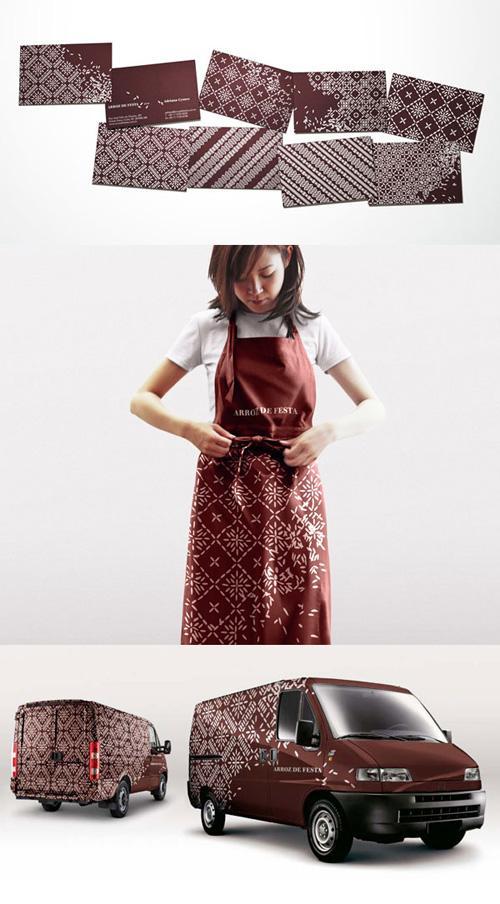 Логотип и не сразу найдешь на имиджевых носителях. Центральный элемент узнаваемости — рис, из которого по определенным правилам образуются фоновые орнаменты.