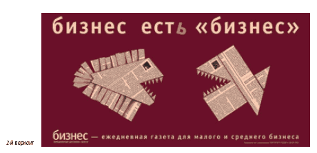 Во-вторых, подразумевала домысливание о позиционировании издания на малый и средний бизнес (что, опять же, не очень хорошо на этапе вывода нового продукта на рынок). И, в-третьих, не позволяла крупно (а это все-таки наружная реклама) показать логотип нового продукта».