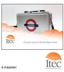 Кирилл Зайцев, FORM-A: Здесь воплощена предложенная заказчику идея диверсификации двух направлений бизнеса на уровне логотипа. «Образование за рубежом» должны были воплощать собой облака и пробивающееся из-за них солнце, а «Туризм и отдых» предполагалось обозначить символической волной. Были созданы фактически два логотипа, которые могли быть использованы независимо друг от друга, были сверстаны пробные макеты, которые отражали идею диверсификации фирменного знака. Но на моменте сведения двух знаков воедино возникли проблемы — объединенный логотип неумолимо превращался в логотип Pepsi, и от этих ассоциаций уйти было практически невозможно. Нужно было искать дальше. Правда, на этом этапе появились определенные находки, отразившиеся в конечном варианте. Во-первых, изменилось начертание названия компании: от аббревиатурного Itec к заглавному Itec (тоже в эмоциональную сторону); а во-вторых, появилась идея использовать облака не только как составную часть логотипа, но и как дополнительный элемент брендинга, определяющий стилистику рекламной коммуникации.