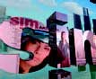 SIM на фоне ультрасовременного города. Камера движется, и в буквах отражаются страницы журнала из разных рубрик.