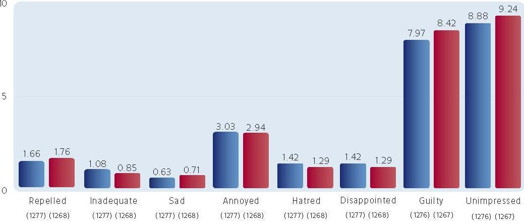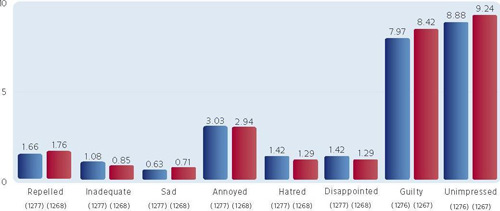 Таким образом, хотя в целом между гендерными группами может и не наблюдаться различий в их реакции на рекламу, при оценке конкретного ролика реакция может существенно отличаться.