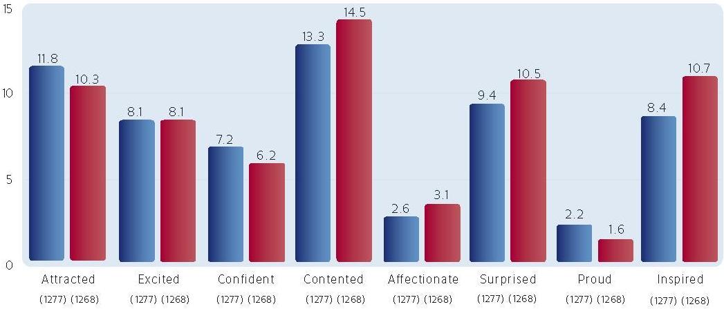 Слева направо: привлекательность, восторг, уверенность, удовлетворенность, привязанность, удивление, гордость, вдохновение