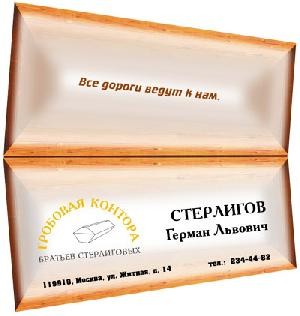 Но что-то больше не слышно про эту гробовую контору. Неужели сдохла? Или дела идут настолько мармеладно, что Стерлиговы в рекламе больше не нуждаются?