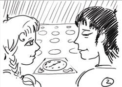 Головы поворачиваются профилем и улыбаются друг другу. Становится понятно, что у мужчины ярко выраженная «восточная» внешность (раскосые глаза, желтоватый цвет кожи), у женщины «европейская» (голубые глаза, светлые волосы)
