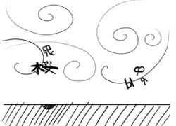 Камера показывает пустое белое поле, на которое ветер приносит с разных сторон буквы.