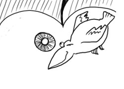 Камера наезжает ближе, ворона заглядывает в дырку.