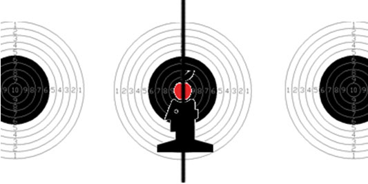 (закадровым текстом мысли стрелка: «я должен попасть в центр/в яблочко»).