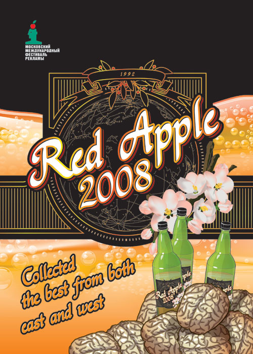 Основная мысль: RA собирает самые лучшие креативные соки по всему миру Сочетание восточного и западного реализовано в сочетании сугубо европейского построения композиции этикетки и восточных мотивов (ветвь цветущей яблони - как аналогия цветущей сакуры). Широта охвата конкурса подчеркнута прозрачным глобусом на заднем плане Суть кампании: во всех медиа размещаются рекламные блоки сока Red Apple, выполненные в традиционной манере рекламы соков.