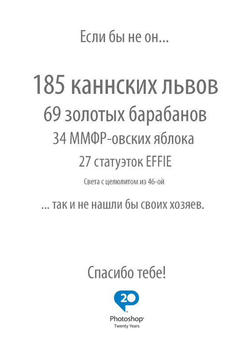 Sostav.ru и Adobe предлагают Вам поздравить Photoshop с юбилеем. Оригинальные, яркие, красочные поздравительные открытки, созданные вами, станут лучшим подарком! Выкладывайте свои работы нам, а жюри определит победителей. Они получат призы от Adobe Systems.