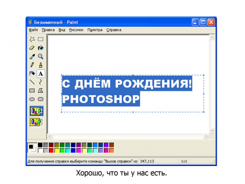 Спасибо, что ты у нас есть Photoshop, а то так бы и работали в Пейнте.
