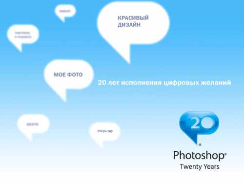 Я заметил что логотип 20-летия похож на speech-ballon -такой которым в мультиках и комиксах обозначаются мысли и слова. И ведь правда, уже 20 лет этот прекрасный продукт исполняет наши желания- цифровые- кому помогает добиться цвета и красоты на фото, а к