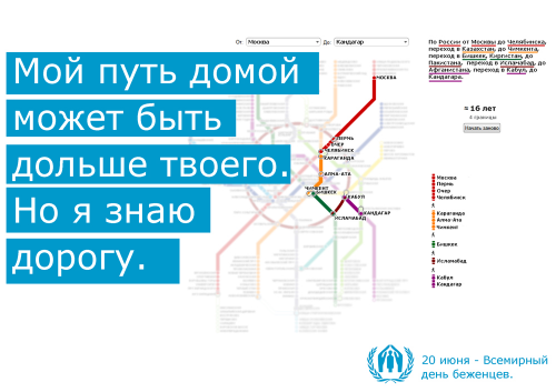 Мне показалось важным внедрить в коммуникацию месседж о том, что беженцы - не конкуренты гражданам государств, гостями которых они являются, не экспаты и не "понаехали". Самая большая мечта большинства беженцев - вернуться на родину, такую, какой она была до потрясений, вынудивших их покинуть страну. Осознание этого сможет улучшить образ беженцев в общественном мнении и вызвать сочувствие.
