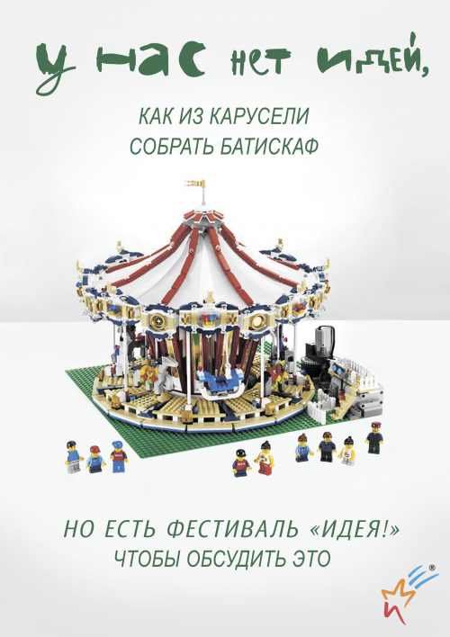 У нас нет идей. Привозите свои! - так дирекция фестиваля и авторы рекламной кампании (РГ "Иллан") приглашают участников на "Идею!".