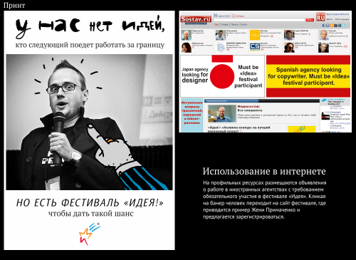 У нас нет идей. Привозите свои! - так дирекция фестиваля и авторы рекламной кампании (РГ "Иллан") приглашают участников на "Идею!".