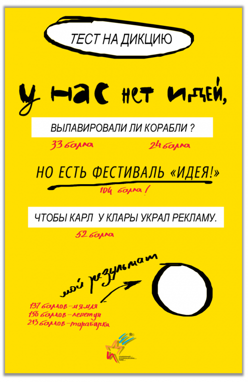 - Слоган «У нас нет идей, ..., но есть фестиваль "Идея!", ...».
