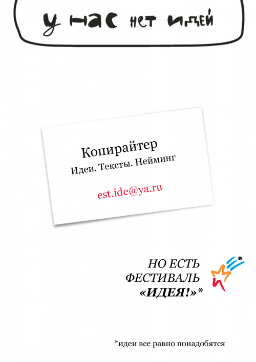 - Слоган «У нас нет идей, ..., но есть фестиваль "Идея!", ...».