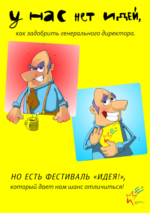 У нас нет идей. Привозите свои! - так дирекция фестиваля и авторы рекламной кампании (РГ "Иллан") приглашают участников на "Идею!".