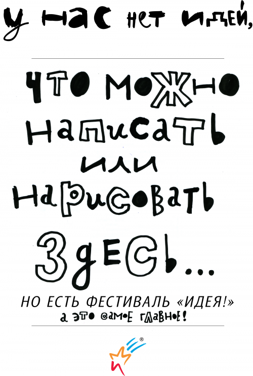 У нас нет идей. Привозите свои! - так дирекция фестиваля и авторы рекламной кампании (РГ "Иллан") приглашают участников на "Идею!".