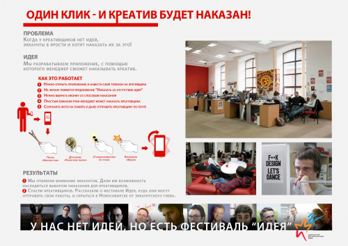 Оказывается, у эккаунт-менеджеров есть много способов наказать креативщиков, у которых нет идей. Фестиваль "Идея" поможет работникам креативных отделов избежать наказания.