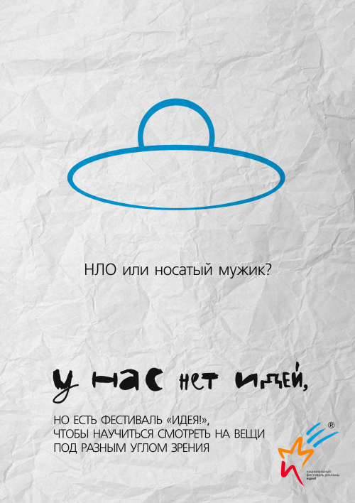 У нас нет идей. Привозите свои! - так дирекция фестиваля и авторы рекламной кампании (РГ "Иллан") приглашают участников на "Идею!".