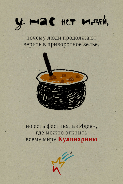Рекламные идеи решают конкретные задачи конкретных людей. Иногда желания целевой аудитории труднообъяснимы:) Например, пить и петь одновременно или верить в силу приворотного зелья и волшебную кухню. Фестиваль «Идея» - это место, куда привозят свои идеи, отвечающие чужим желаниям.