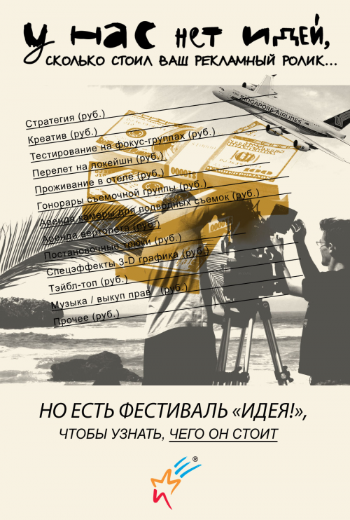 У нас нет идей. Привозите свои! - так дирекция фестиваля и авторы рекламной кампании (РГ "Иллан") приглашают участников на "Идею!".