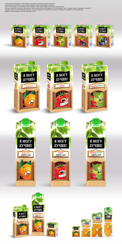 Участникам нужно предоставить концепт-дизайны для детской линейки соков и нектаров под условным брендом «Я могу лучше!» хотя бы для трех разных вкусов.