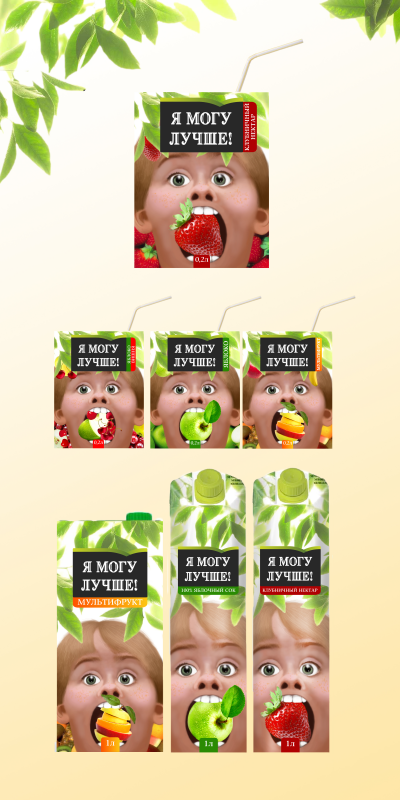 Участникам нужно предоставить концепт-дизайны для детской линейки соков и нектаров под условным брендом «Я могу лучше!» хотя бы для трех разных вкусов.